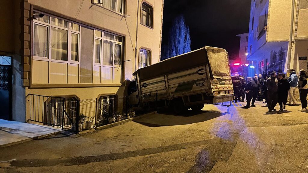 Sürüklenmeye devam eden kamyonet ve minibüs, Erikli Caddesi 3'üncü Sokak'ta bulunan 4 katlı apartmanın korkuluklarının üzerinden durarak, zemin kattaki apartmanın duvarına çarptı.