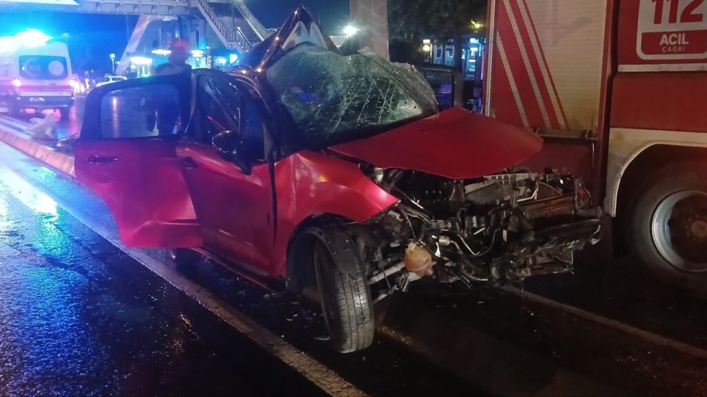 Beylikdüzü ilçesinde İngiltere kontrolündeki otomobil, direksiyon hakimiyetini kaybederek D-100 karayolu üzerindeki elektrik direğine çarptı.