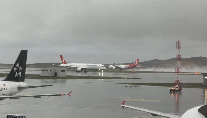 Sağanak yağış İstanbul Havalimanı’nı da etkiledi: Uçuşlarda aksama olmadı