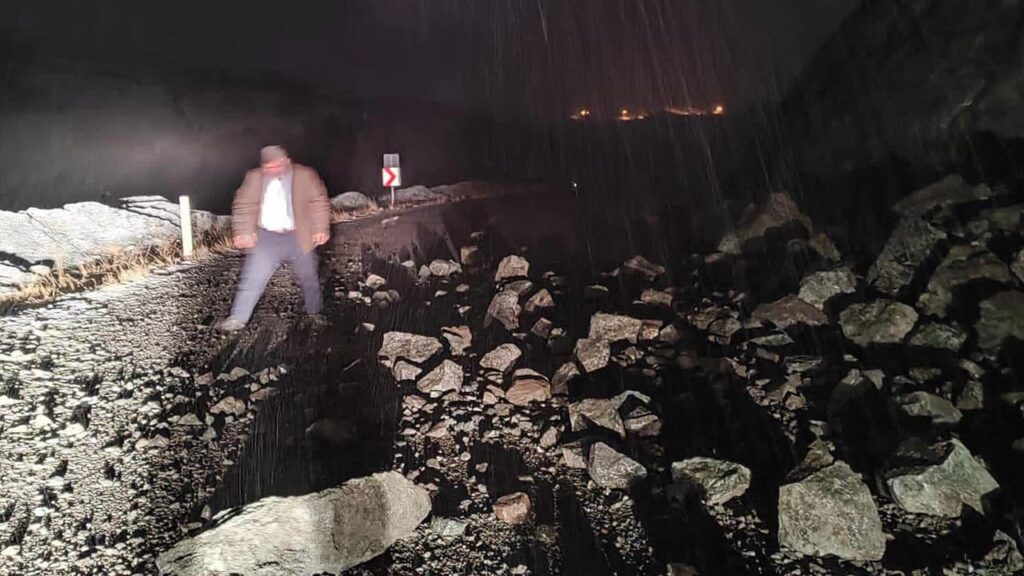 Heyelan nedeniyle ilçe yolu trafiğe kapatıldı.